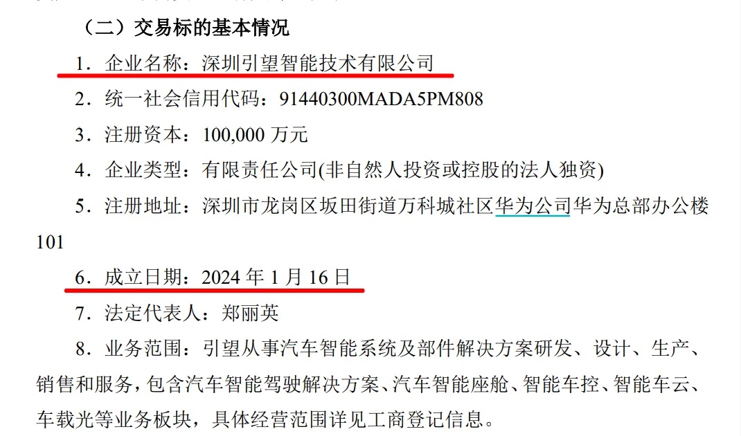 今年1月16日,華為已完成目標(biāo)公司的注冊,名稱為深圳引望智能技術(shù)有限公司。資料顯示,深圳引望即為華為車BU成立的公司,成立于2024年1月16日,注冊資本為10億元,注冊地址在深圳市龍崗區(qū)坂田街道萬科城社區(qū)華為公司華為總部辦公樓101,目前華為持股100%。