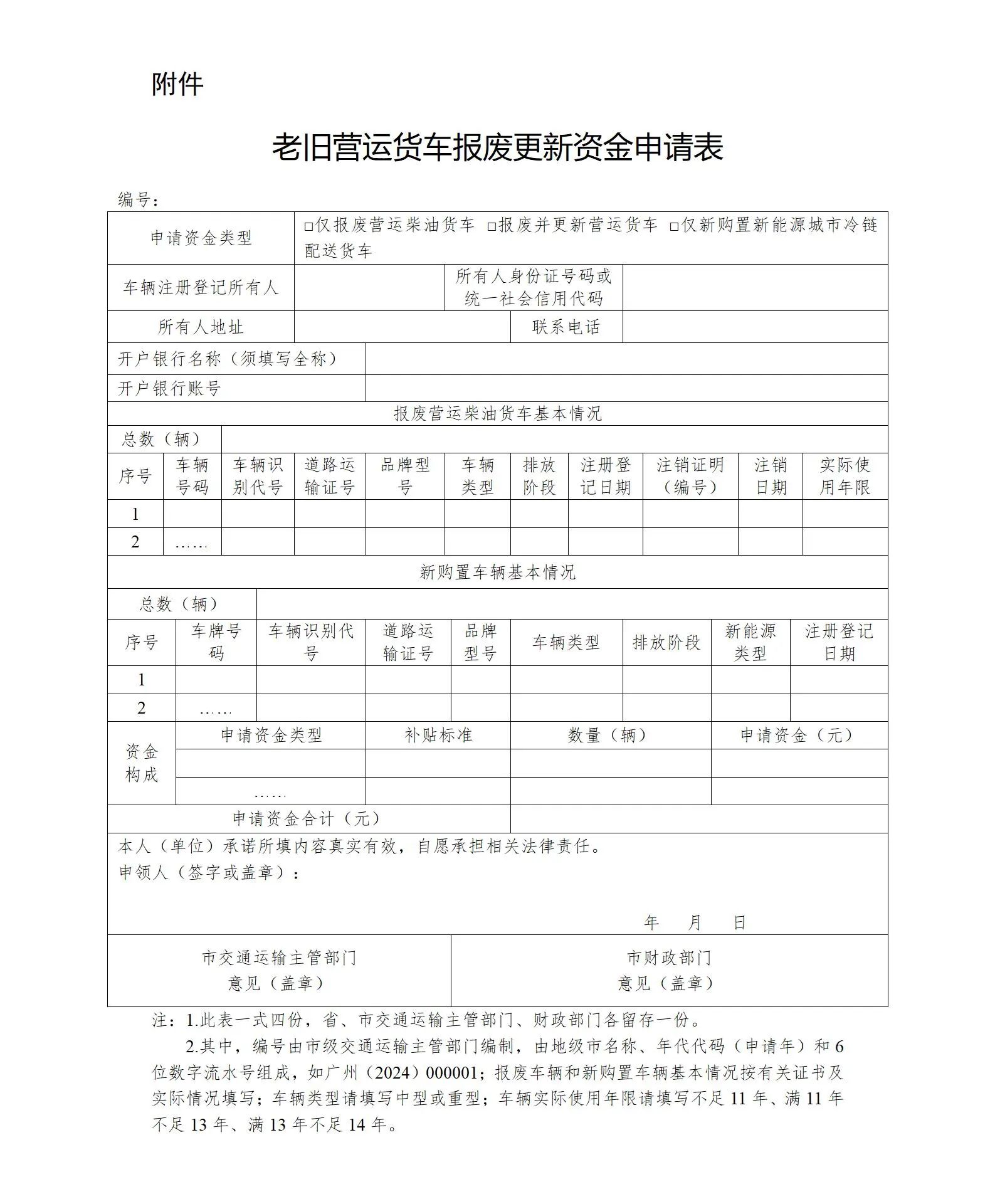 附件:老舊營運貨車報廢更新資金申請表