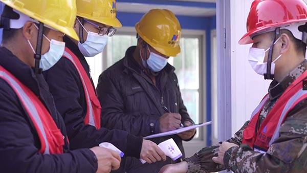 疫情防控阻擊戰(zhàn)打響至今,項目部臨時黨委始終深入貫徹落實(shí)黨中央、國務(wù)院及上級公司相關(guān)決策部署,采取了一系列應(yīng)對措施,上下一盤棋,毫不放松抓緊抓實(shí)抓細(xì)疫情防控及復(fù)工復(fù)產(chǎn)工作,切實(shí)履行央企擔(dān)當(dāng),全力筑牢安全防線。項目部臨時黨委一班人“逆行”而上,提前到崗,保障4000個醫(yī)用口罩、5臺背式噴霧器、200公斤84消毒液、14把紅外式體溫槍及10套防護(hù)服等防疫物資到位;復(fù)工前后,共分發(fā)1000余份防疫物資,測溫2682人次,全面消殺132次。工作中形成項目部到工地現(xiàn)場兩點(diǎn)一線的的閉環(huán)管理,嚴(yán)格落實(shí)戴口罩、每日2次體溫測量、2次噴霧消毒、不聚集、分餐吃等防疫相關(guān)規(guī)定,密切關(guān)注人員身體健康狀況并做好記錄;制作、張貼防護(hù)宣傳標(biāo)語50張、橫幅16條、防控知識手冊150本,不間斷開展防治知識宣教,切實(shí)筑牢阻止疫情侵襲的銅墻鐵壁。
