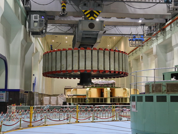 中國電力網訊 4月29日上午,記者在國網甘肅劉家峽水電廠廠房內看到,在現場起重指揮的哨聲下,該廠700多噸的4號發(fā)電機轉子,經過三起三落的試探性起吊后順利回裝至發(fā)電機定子中央,標志著該廠號4號機組A級檢修及定子改造工程進入了關鍵階段。