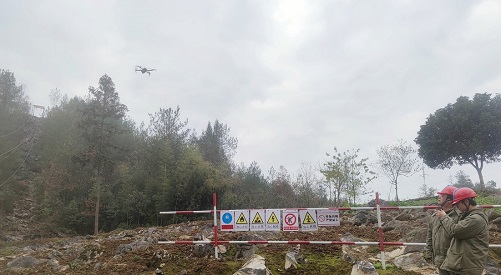 中國(guó)電力網(wǎng)訊 12月8日,在湖北省建始縣花坪鎮(zhèn)三岔槽村,湖北送變電工程有限公司恩施東-朝陽(yáng)500千伏線路工程(恩施段)項(xiàng)目工人們翻山越嶺奔赴(T53號(hào))基礎(chǔ)施工場(chǎng),他們?nèi)讨坦呛L(fēng),運(yùn)用無(wú)人機(jī)對(duì)電網(wǎng)施工點(diǎn)位開(kāi)展安全巡查,助力工程建設(shè)平穩(wěn)推進(jìn)。(郭秀春、郭暉)