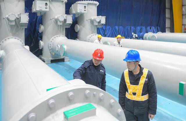 2024年1月30日,川渝特高壓交流工程1000千伏銅梁變電站,國網(wǎng)重慶市電力公司施工管理人員在1000千伏GIS移動無塵裝配車間進行氣室壓力檢查。記者 張錦輝 攝/視覺重慶