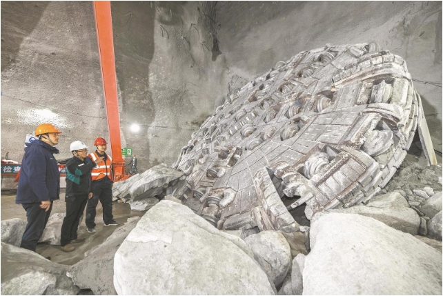 1號(hào)引水斜井貫通后,工作人員開展現(xiàn)場(chǎng)評(píng)估。王洋 攝