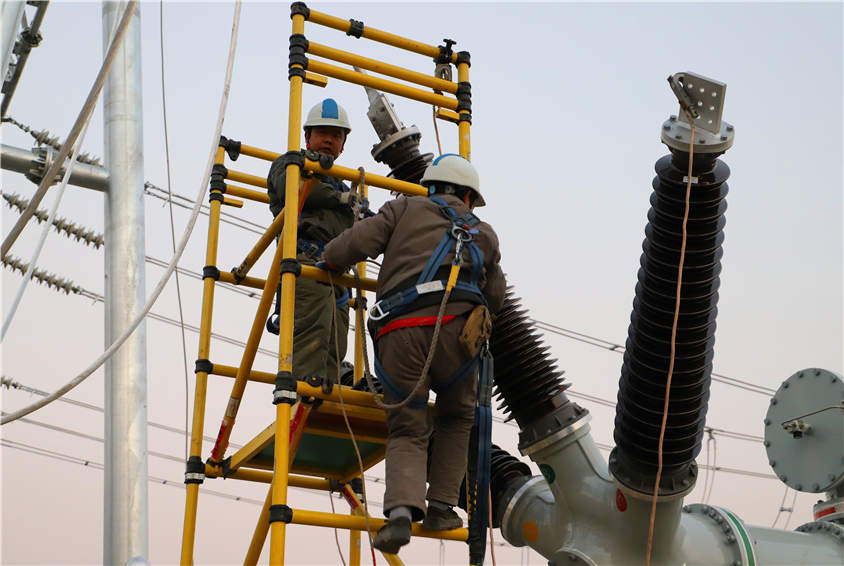“由于在原變電站區(qū)域內(nèi)改造,因此施工面臨運(yùn)輸不暢、場(chǎng)地受限等困難。為確保工程順利推進(jìn),現(xiàn)場(chǎng)作業(yè)人員分為調(diào)試組、吊裝組、輔助安裝組、帶電檢測(cè)組,分工明確、責(zé)任到人,提前完成風(fēng)險(xiǎn)管控措施、事故處置原則、工程施工方案及應(yīng)急方案的宣貫學(xué)習(xí),施工車(chē)輛、機(jī)械、設(shè)備、人員等全部到位,提前全方位做好工程籌備工作。”擔(dān)任該項(xiàng)目總工的朱本雄介紹。