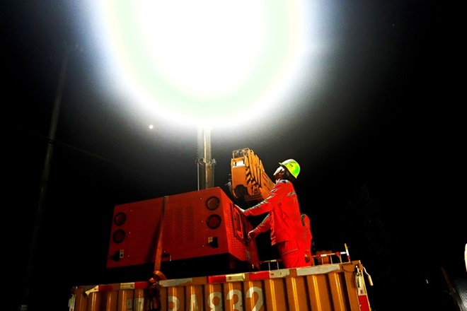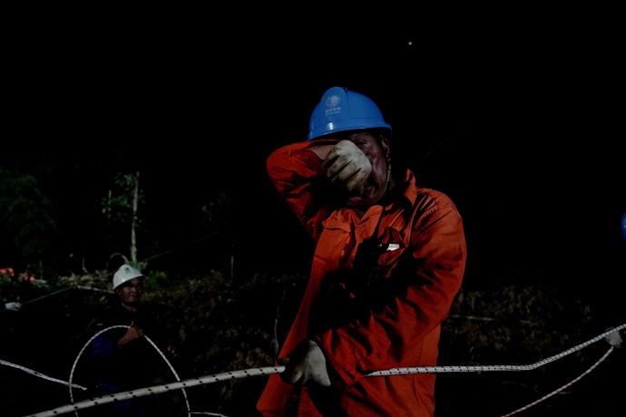 烈日灼空,熱浪翻涌。39℃炙烤,他們攀越百米鐵塔,工裝下汗水聚成溪流;荒野寂寂,夏蟲長鳴,他們安全帽下的曬痕如勛章鐫刻堅守。 鐵塔“生長”的每一寸高度,都銘記著他們擰緊螺栓的力度;銀線延伸的每一米軌跡,都丈量著他們踩著滾燙砂石校準(zhǔn)弧垂的精度;設(shè)備轟鳴的每一聲回響,都見證著他們裹著濕透工裝晝夜鏖戰(zhàn)的赤誠。