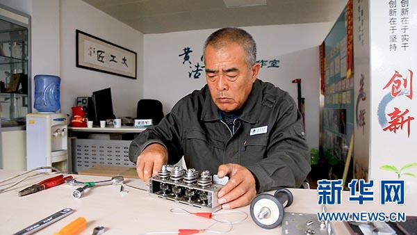 黃浩軍在研究工器具。新華網(wǎng)發(fā)(王曉飛 攝)