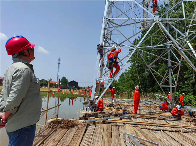 頓時,施工現(xiàn)場爆發(fā)出熱烈的歡呼聲。人群中,一位身材結實、面色黝黑的中年男子望著延伸向遠方的銀線,眼角泛起欣慰的笑容。他就是湖北荊力電力集團總包分公司土建工區(qū)主任趙斌——這條“電力天路”的建設指揮官。
