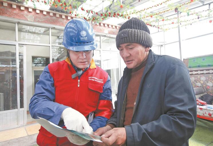 黨員電力網(wǎng)格員為客戶講解冬季安全用電知識(shí)。旺瑪多杰 攝