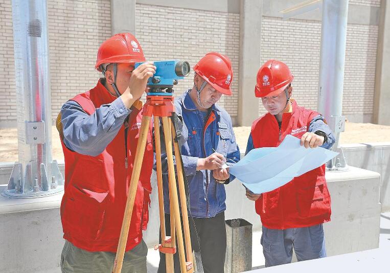 在750千伏烏圖(昆侖山)輸變電工程現(xiàn)場(chǎng),臨時(shí)黨支部黨員和技術(shù)人員開(kāi)展施工勘測(cè)。馬清 攝