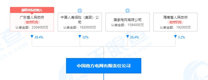 根據(jù)公開(kāi)資料查詢,本次調(diào)整前中國(guó)南方電網(wǎng)總注冊(cè)資本為600億元。共有4家股東,股本比例是:廣東省人民政府出資230.4億,占比38.4%,為第一大股東,中國(guó)人壽保險(xiǎn)(集團(tuán))公司出資192億,占比32%,排名第二,國(guó)家電網(wǎng)有限公司出資158.4億,占比26.4%,排名第三,海南省人民政府認(rèn)繳19.2億,占比3.2%,排名最末。