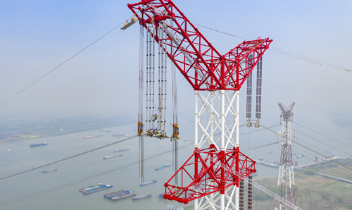 跨越長(zhǎng)江航道,“銀線渡江河”。