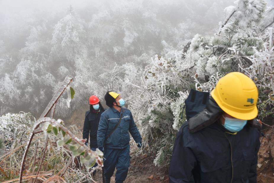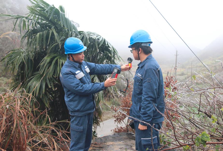 “線路有輕微覆冰,鐵塔塔基穩(wěn)固,螺絲沒有松動(dòng)。”12月1日,南方電網(wǎng)廣東韶關(guān)乳源供電局陳宇飛等人冒著凍雨來到大橋鎮(zhèn)中沖、三元、紅云等村莊,重點(diǎn)對(duì)高海拔地區(qū)、山頂、大風(fēng)口等特殊地段鐵塔和線路覆冰情況進(jìn)行巡視檢查,及時(shí)處置線路覆冰,確保通電正常。