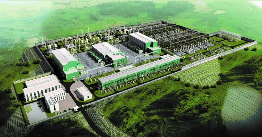 ▲寧夏—湖南±800千伏特高壓直流輸電工程衡陽換流站效果圖