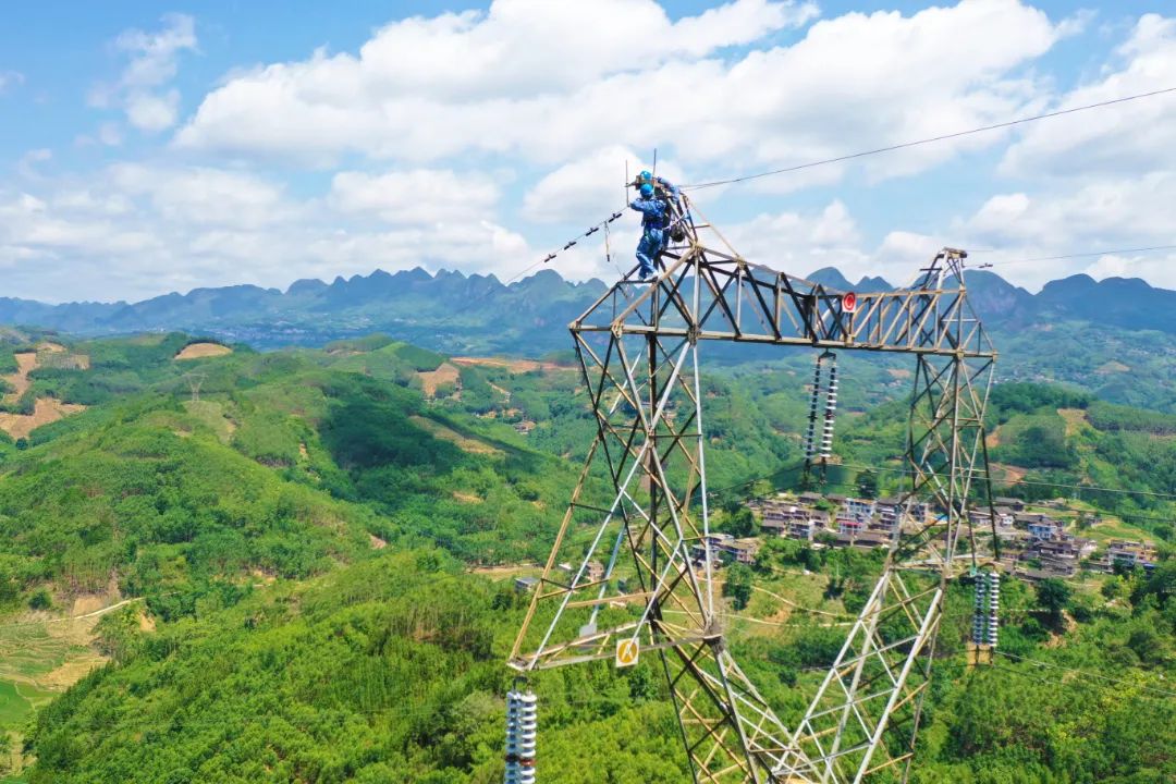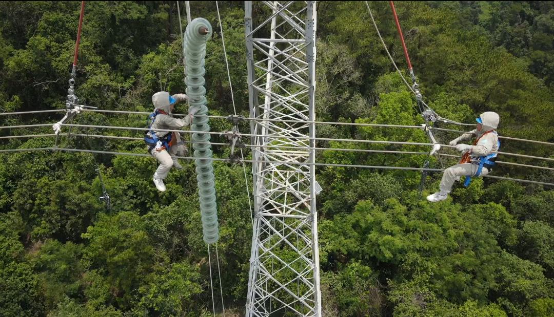 南方電網(wǎng)超高壓公司百色局運(yùn)維人員開展500千伏線路帶電作業(yè),全力確保迎峰度夏期間西電東送大通道供電穩(wěn)定。(玉建生 攝)