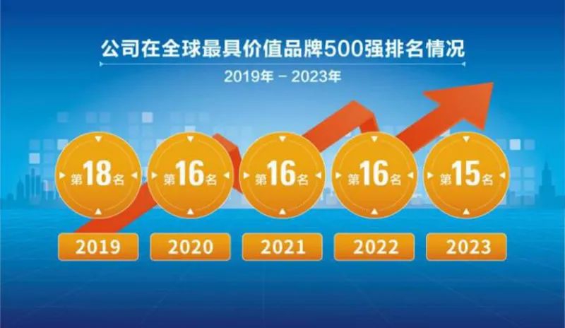 公司在《財富》世界500強位列第3位,連續(xù)11年獲三大國際評級機構(gòu)國家主權(quán)級信用評級,連續(xù)19年獲得國務(wù)院國資委業(yè)績考核A級,連續(xù)6年位居全球公用事業(yè)品牌第一位,在中央企業(yè)品牌建設(shè)對標(biāo)中排名前三。公司品牌價值從2019年4575.36億元上升至2023年6268.71億元,連續(xù)8年位列中國500最具價值品牌榜首。全球最具價值品牌500強排名從2019年第18位上升至2023年第15位。