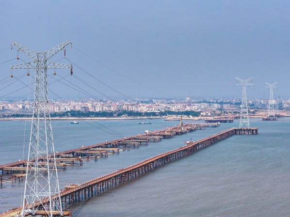 為最大程度上減小對(duì)海洋生態(tài)環(huán)境的影響,國(guó)家電網(wǎng)公司采用透水性構(gòu)筑物施工方式,在海上搭設(shè)4.7萬(wàn)平方米的棧橋通道,棧橋搭設(shè)鋼材使用量超過(guò)了5.6萬(wàn)噸,為國(guó)內(nèi)在建電力工程規(guī)模最大的海上棧橋。