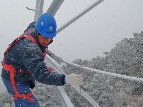 近日,安徽大別山區(qū)、皖南山區(qū)迎來低溫雨雪天氣,部分輸電線路出現(xiàn)覆冰情況。國網(wǎng)安徽電力部門開展定時巡檢,及時做好輸電線路的融冰、除冰工作,全力守護冰雪天氣下的“電力動脈”運行安全。