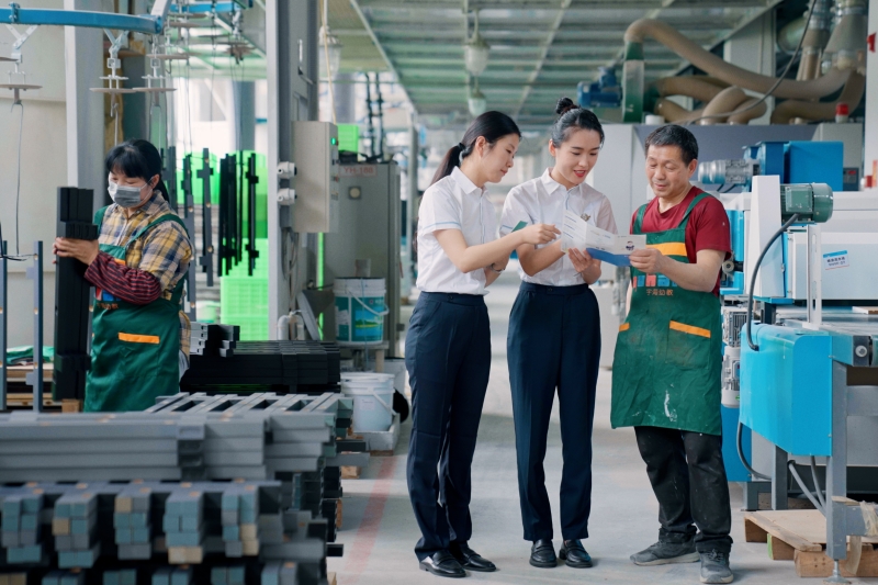 國(guó)網(wǎng)浙江麗水供電公司員工在景寧智能家居生產(chǎn)企業(yè)了解生產(chǎn)用電需求。
