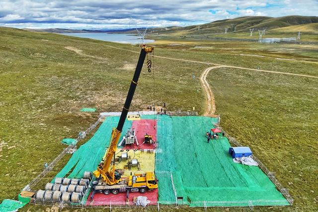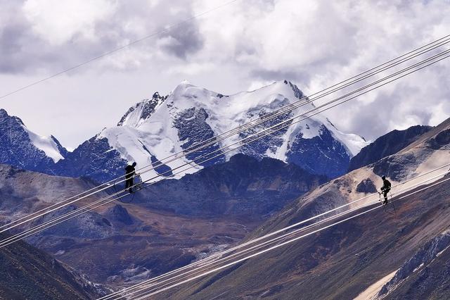國(guó)網(wǎng)青海送變電公司施工人員在玉樹(shù)II回330千伏線路工程展放導(dǎo)線。