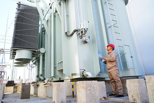 國(guó)網(wǎng)天津建設(shè)公司員工在蘆臺(tái)500千伏變電站擴(kuò)建工程現(xiàn)場(chǎng)進(jìn)行主變表計(jì)消缺復(fù)驗(yàn)工作。