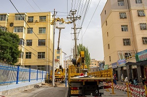 在現(xiàn)場,地勤人員進(jìn)行路障、警示牌與圍欄等安全防護(hù)設(shè)置,帶電作業(yè)人員乘坐絕緣斗臂車到達(dá)作業(yè)位置,對線路進(jìn)行帶電作業(yè),通過新建臨時電桿,將“占道電桿”分支線路所有負(fù)荷轉(zhuǎn)供,為接下來的不停電“零感知”地下遷移工作打下基礎(chǔ)。“這次的項(xiàng)目不僅可以拆除‘占道電桿’,同時對年久雜亂的線路‘蜘蛛網(wǎng)’還可以進(jìn)行集中整理,既美化了市容市貌,又解決了線路存在的安全隱患。”現(xiàn)場負(fù)責(zé)人張偉說。目前,該項(xiàng)工程正根據(jù)工程計(jì)劃有序進(jìn)行,計(jì)劃在11月底完工,徹底解決車輛通行安全隱患,暢通“惠民路”讓廣大居民用電無憂、安全出行。