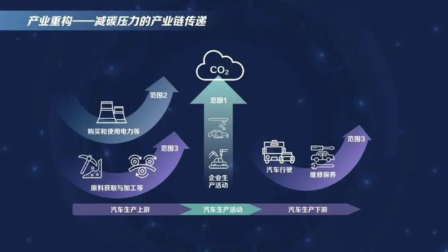 另外,產(chǎn)業(yè)重構(gòu)方面,減碳壓力的產(chǎn)業(yè)鏈傳遞也很突出?,F(xiàn)在越來越多的全球性大公司自主承諾減排,原來對一家企業(yè)到底排多少碳主要看它的生產(chǎn)過程,但現(xiàn)在已經(jīng)擴大到產(chǎn)業(yè)鏈。一個產(chǎn)業(yè)鏈包括上游的原料和下游產(chǎn)品的應(yīng)用,把上下游綜合考慮起來,就會形成減碳壓力的產(chǎn)業(yè)鏈傳遞。比如,中國現(xiàn)在是世界上最大的小汽車生產(chǎn)和消費市場,每年產(chǎn)銷2500—3000萬輛,這個量是美國和日本加起來的總和,這么大的量,對鋼材會有比較大的需求。一家承諾了整個產(chǎn)業(yè)鏈上要減碳的跨國公司在生產(chǎn)小汽車時,就會要求上游生產(chǎn)鋼材的廠家也要跟著它減碳,這樣會形成倒逼,煉鋼廠如果達不到它的要求,它就會去找其他能達到要求的供應(yīng)商,所以在自主減排的目標(biāo)實現(xiàn)里會形成新的壓力傳遞,這是未來產(chǎn)業(yè)重構(gòu)里非常重要的驅(qū)動因素。