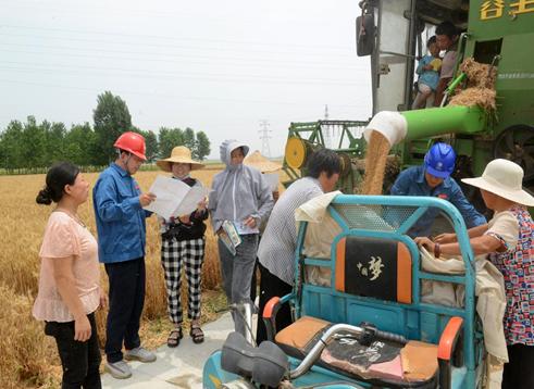 國網(wǎng)泗水縣供電公司組織服務(wù)人員走進(jìn)田間地頭,巡視供電線路設(shè)備,向正在麥?zhǔn)盏拇迕裥麄靼踩秒娭R,對收割機駕駛員和運輸秸稈的貨車司機開展線路防外力破壞宣傳,為麥?zhǔn)展┯秒姲踩q{護航。