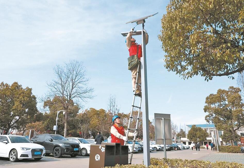 黨員服務(wù)隊(duì)隊(duì)員來(lái)到位于淮安市淮安區(qū)的周恩來(lái)紀(jì)念館,檢修停車(chē)場(chǎng)的光伏路燈。