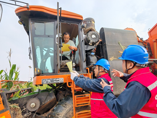 國網(wǎng)元氏縣供電公司員工在鐵屯村向收割機駕駛員宣傳安全用電常識。劉美君攝走進晉州市周家莊鄉(xiāng)的田間地頭,一輛輛玉米收割機正在緊張工作中。國網(wǎng)晉州市供電公司員工提醒收割機手操作中注意機器與電線桿、拉線的安全距離。秋收期間,國網(wǎng)石家莊供電公司組織共產(chǎn)黨員服務隊深入田間地頭,開展電力設施保護宣傳,防止外力破壞影響。