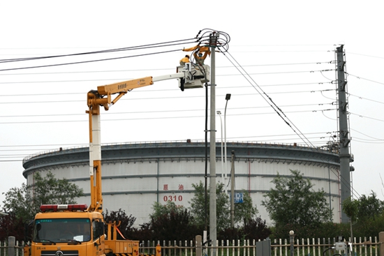 中國(guó)電力網(wǎng)訊 7月7日,在濰坊壽光市羊口鎮(zhèn)工業(yè)園區(qū),國(guó)網(wǎng)壽光市供電公司帶電作業(yè)人員對(duì)10千伏雙鵬線鹽場(chǎng)支線26號(hào)桿帶電處理A項(xiàng)隔離刀閘發(fā)熱缺陷,進(jìn)一步提高線路供電可靠性,保障園區(qū)企業(yè)迎峰度夏期間電力可靠供應(yīng)。