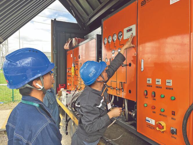 “更換過(guò)程中,為了保證舊斷路器不受潮,我們?cè)诓鹣碌奶坠芗氨倔w氣室內(nèi)及時(shí)充入高純氮?dú)獠⑥D(zhuǎn)移存放。在支架及本體就位后,套管要在環(huán)境滿足條件的情況下才能進(jìn)行安裝。”國(guó)網(wǎng)甘肅超高壓公司變電檢修中心變電一次檢修五班班長(zhǎng)邵建軍說(shuō)。檢修人員在保證新斷路器安裝質(zhì)量的同時(shí),還要開(kāi)展六氟化硫氣體微水及組分檢測(cè)、斷路器常規(guī)試驗(yàn)和耐壓試驗(yàn)等一系列工作,確保斷路器更換質(zhì)量合格。