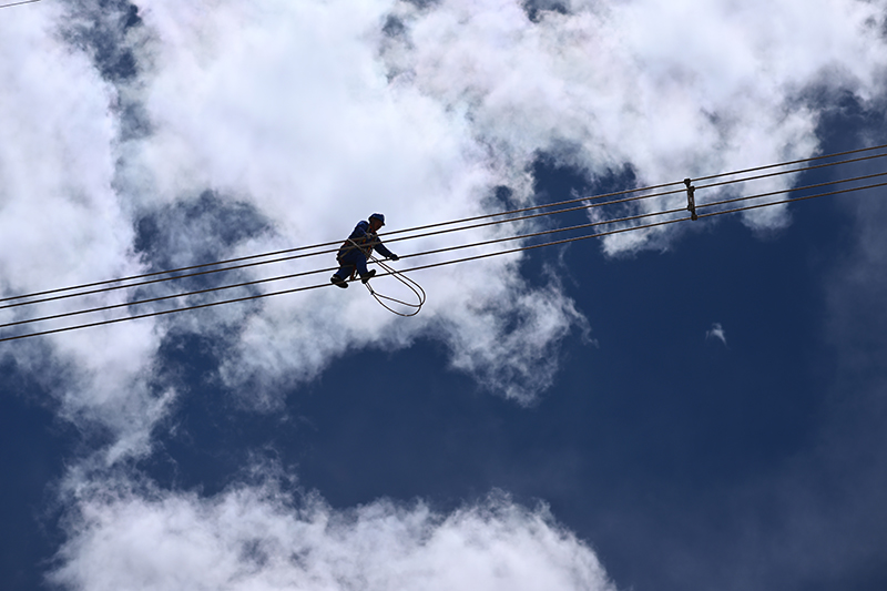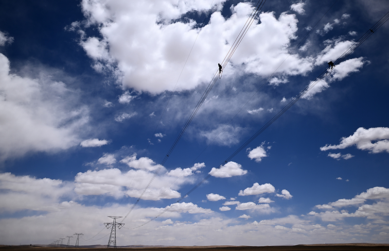 5月底,被譽(yù)為“電力天路”的青藏聯(lián)網(wǎng)工程迎來(lái)年度集中檢修,超過(guò)420人將在15天內(nèi)完成608公里的輸電線路及柴達(dá)木換流站的檢修工作。在平均海拔超過(guò)4500米的長(zhǎng)江源頭腹地,檢修人員克服高寒缺氧的環(huán)境,在云端走線巡檢,成為“電力天路”一道獨(dú)特的風(fēng)景。