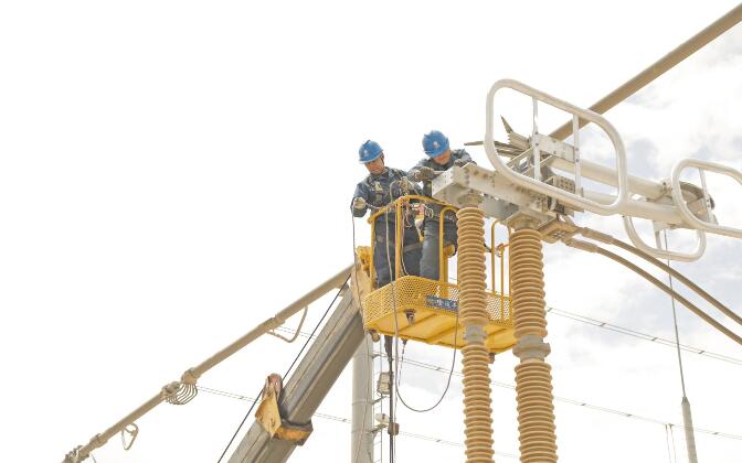 黨員突擊隊(duì)隊(duì)員檢修750千伏黃河變電站330千伏母線側(cè)隔離開(kāi)關(guān)。祁玉金 攝