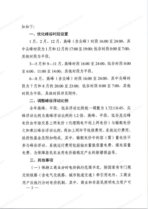 關(guān)于調(diào)整工商業(yè)分時(shí)電價(jià)有關(guān)事項(xiàng)的通知