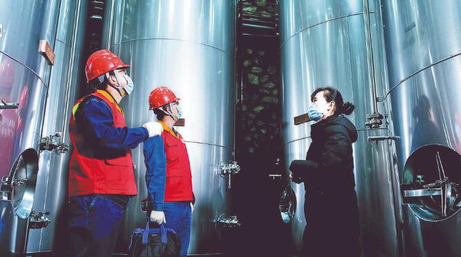 黨員突擊隊(duì)隊(duì)員在志輝源石酒莊檢查滴灌泵站設(shè)備。