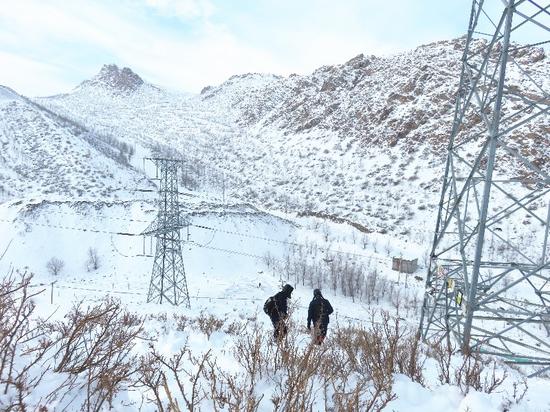 2月17日,國網(wǎng)烏魯木齊供電公司輸電運(yùn)檢人員巡視監(jiān)測(cè)線路覆冰情況。狄開麗 攝
