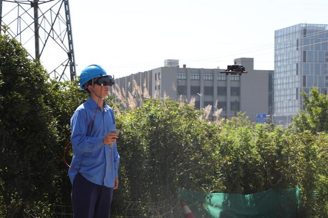 圖為工作人員應(yīng)用飛行眼鏡操控?zé)o人機(jī),對(duì)配電線路開展沉浸式巡線。新華社發(fā)(邵哲文 攝)