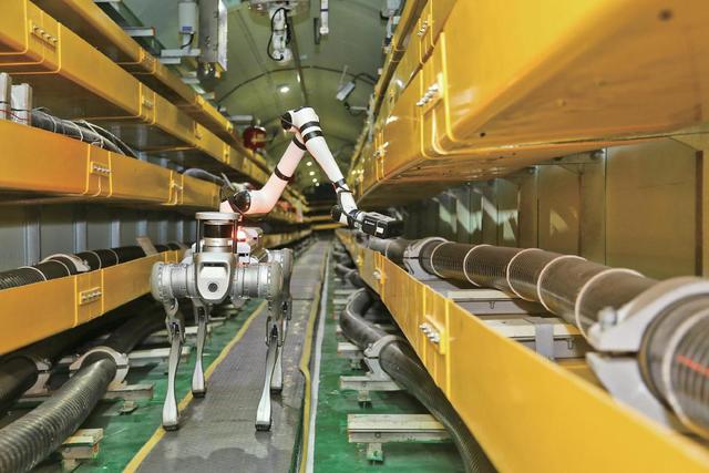 四足巡檢機器狗在電纜隧道里對迎峰度冬重點保障線路開展常態(tài)化巡視檢測。趙旌朝 攝