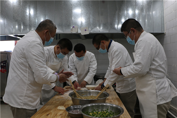 現(xiàn)場(chǎng)慰問(wèn)結(jié)束后,廠(chǎng)領(lǐng)導(dǎo)們來(lái)到職工餐廳,同餐廳值班人員一起為在崗職工包起了餃子,他們還將一些水果糖也包到餃子里,祝愿職工在新的一年里生活更加甜蜜和幸福。