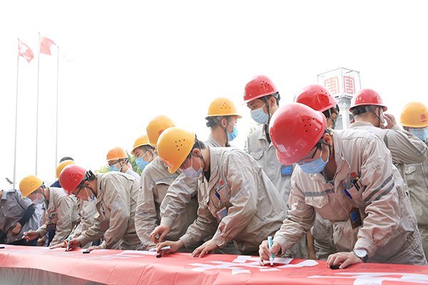 隨后,孟慶文宣布2022年“安全生產(chǎn)月活動”正式啟動。啟動儀式上,發(fā)電部值長賀彬彬作為職工代表向全體員工發(fā)出了安全倡儀。全員在印有“遵守安全生產(chǎn)法 當(dāng)好第一責(zé)任人”的條幅上,鄭重簽下了安全生產(chǎn)從自身做起的莊嚴(yán)承諾。
