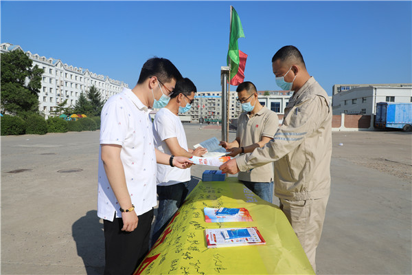 與此同時(shí),長山廠在廠區(qū)醒目位置懸掛條幅,在電子屏上滾動(dòng)播出宣傳標(biāo)語等形式,廣泛宣傳安全生產(chǎn)的重要性。各單位利用安全活動(dòng)日,組織觀看《生命重于泰山》電視專題片,進(jìn)行“安全生產(chǎn)月”活動(dòng)方案學(xué)習(xí)及宣誓活動(dòng),全體人員面對(duì)安全旗,舉起右手進(jìn)行莊嚴(yán)宣誓,通過舉行宣誓活動(dòng),營造了安全月活動(dòng)氛圍,增強(qiáng)了職工的凝聚力。