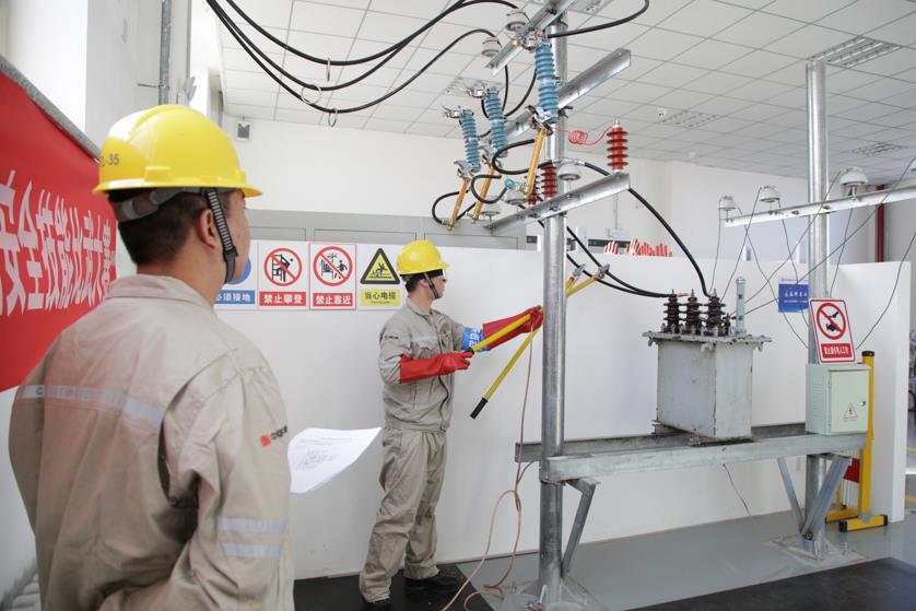 第一項(xiàng)是停送電倒閘操作,評(píng)分方式為裁判組打分。參賽選手兩人一組,一人填寫停電操作票、另一人填寫送電操作票,分別擔(dān)任操作人、監(jiān)護(hù)人;安全防護(hù)用品、安全工器具設(shè)置了過(guò)期標(biāo)簽,檢驗(yàn)參賽選手是否能正確使用;實(shí)際操作過(guò)程中的違章作為扣分項(xiàng)。