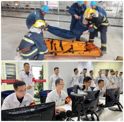 “演練開始”,8月5日,隨著演練總指揮的一聲令下,陜投集團(tuán)趙石畔煤電2號鍋爐水冷壁爆破綜合事故應(yīng)急演練正式拉開序幕,各個崗位人員立即進(jìn)入演練狀態(tài)。