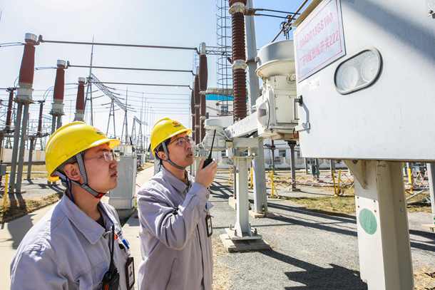 圖為運(yùn)行人員檢查升壓站開(kāi)關(guān)儲(chǔ)能壓力