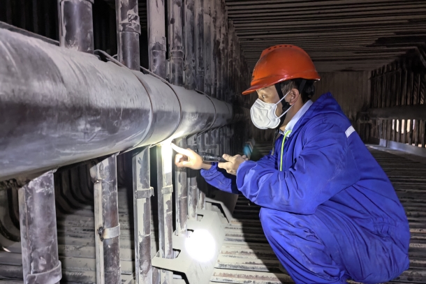 圖為專業(yè)技術(shù)骨干對鍋爐受熱面進(jìn)行“把脈問診”