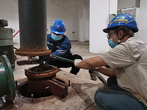 檢修黨員進行滲漏排水泵故障維修