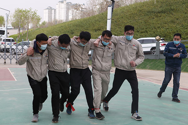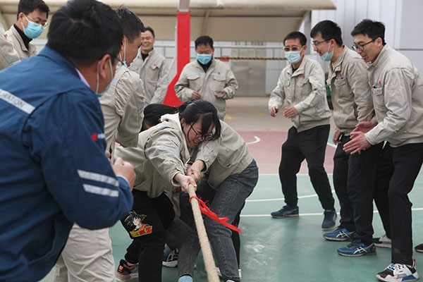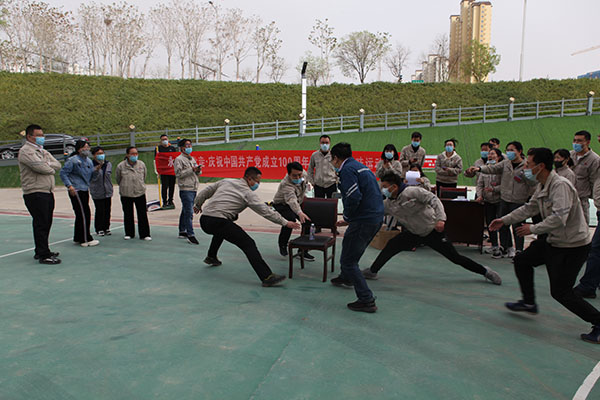 活動由《五人六足跑》《合作共贏》《黨史知識我知道》《紅歌接力》《拔河大賽》等5個項目組成。在《五人六足跑》《合作共贏》項目中,將各參賽隊員的默契表現(xiàn)展現(xiàn)的淋漓盡致,他們齊心協(xié)力、團結(jié)一致,充分展示了廣大職工充滿活力、拼搏向上的精神面貌?!饵h史知識我知道》《紅歌接力》項目將整場活動推向高潮,尤為突出的是廣大職工掌握黨史知識的扎實度,每遇一題,各參賽隊反應迅速,競相展開黨史知識作答,正確率高、回答速度快,比賽中難分伯仲。在《拔河大賽》項目中,各隊都顯示出最強的比賽陣容,只見隊員們緊握長繩,卯足了勁拼命往后拉,哨子聲、吶喊聲此起彼伏,現(xiàn)場氣氛異常激烈。