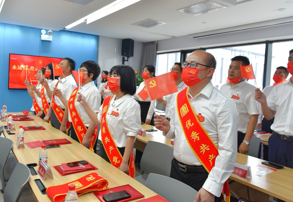 “我志愿加入中國(guó)共產(chǎn)黨,擁護(hù)黨的綱領(lǐng),遵守黨的章程……”張宇帶領(lǐng)新黨員宣誓入黨以及全體黨員重溫了入黨誓詞。