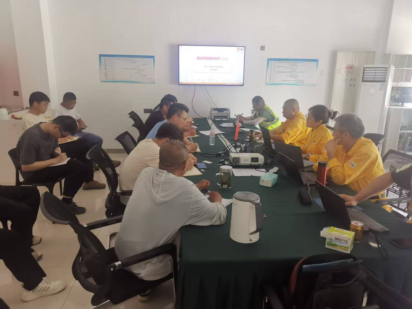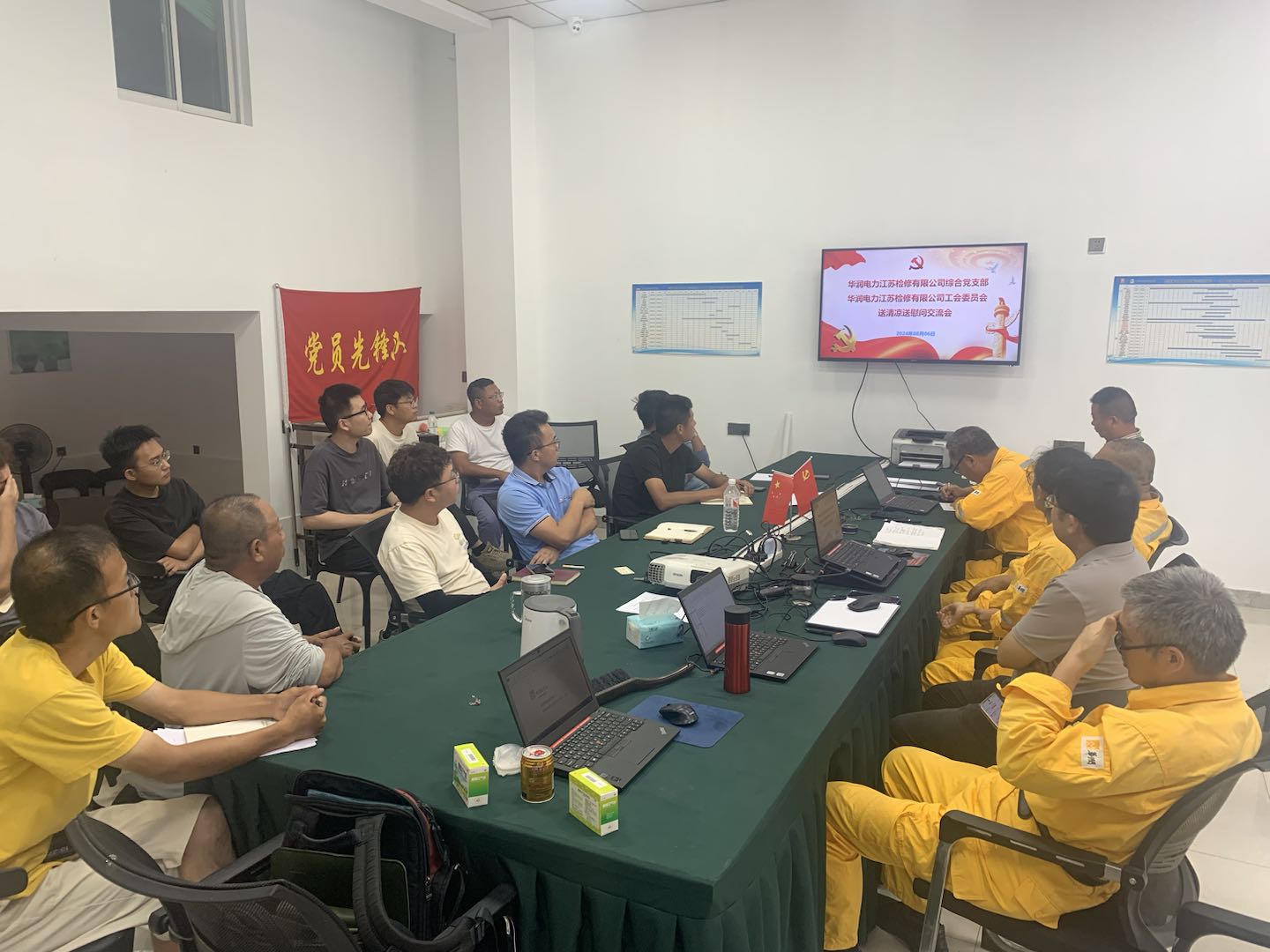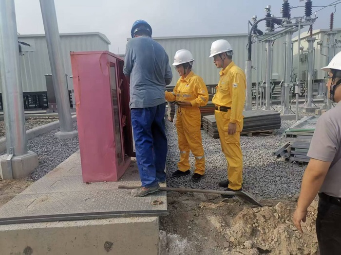 在本次送清涼活動(dòng)中,黨支部成員結(jié)合生產(chǎn)工作,也準(zhǔn)備了針對(duì)建設(shè)項(xiàng)目的法律法規(guī)等課件,對(duì)清江浦建設(shè)項(xiàng)目所有參建單位的管理人員共 16 人,開展了光伏建設(shè)項(xiàng)目相關(guān)知識(shí)的培訓(xùn)及測(cè)試。培訓(xùn)結(jié)束后,并對(duì)施工現(xiàn)場(chǎng)進(jìn)行了相關(guān)安全檢查,重點(diǎn)檢查了升壓站區(qū)域施工現(xiàn)場(chǎng)的安全防護(hù)措施、個(gè)人防護(hù)裝備以及施工現(xiàn)場(chǎng)的安全管理狀況,確保每一項(xiàng)安全規(guī)定都能被嚴(yán)格遵守。同時(shí),還對(duì)工程進(jìn)度予以了評(píng)估,給出了具有建設(shè)性的意見和建議。