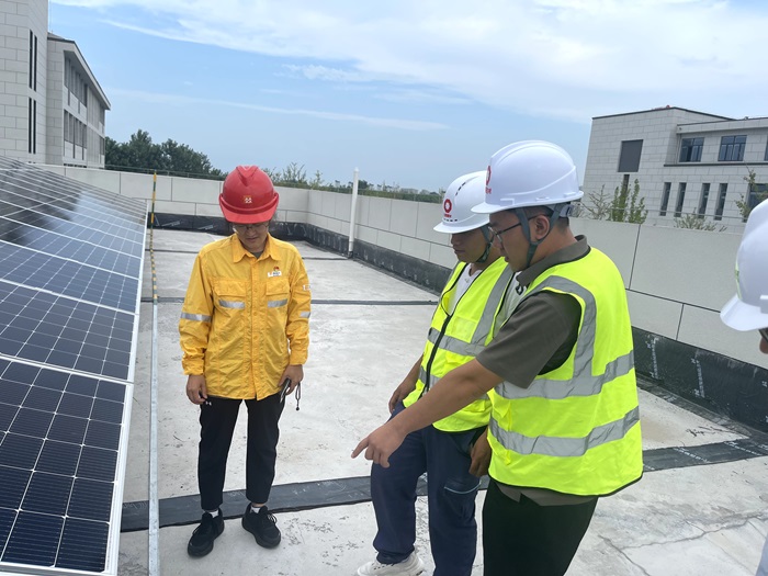 在與施工人員的交流中,檢查小組詳細(xì)詢問了他們的工作強(qiáng)度和作息時(shí)間安排,叮囑大家要合理安排工作,避開高溫時(shí)段,防止中暑。同時(shí),提醒大家要注意飲食衛(wèi)生和個(gè)人休息,保持良好的身體狀態(tài)。送清涼及對(duì)學(xué)校屋頂光伏施工現(xiàn)場(chǎng)檢查后,對(duì)建設(shè)項(xiàng)目現(xiàn)場(chǎng)的所有管理人員進(jìn)行了有針對(duì)性地培訓(xùn)及測(cè)試。